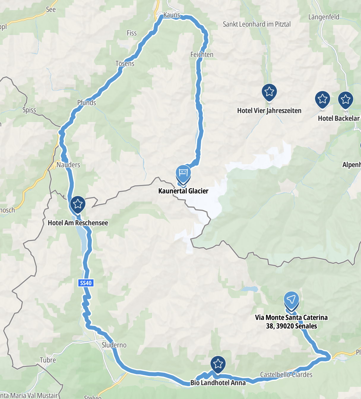 First, we're heading up to the Kaunertal Glacier. Pay the toll; 29 hairpins and 1500 meters of elevation gain await.